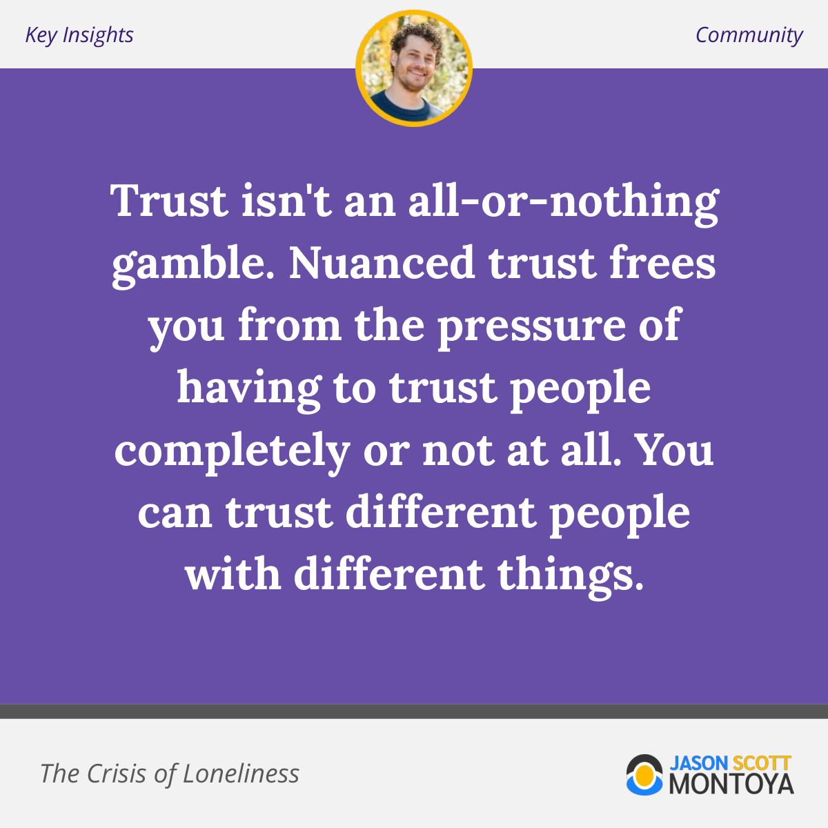 This idea of nuanced trust frees you from the pressure of having to trust people completely or not at all. It allows you to build a resilient social network by selectively letting people in based on their strengths, making the process of rebuilding community feel safer and more manageable.