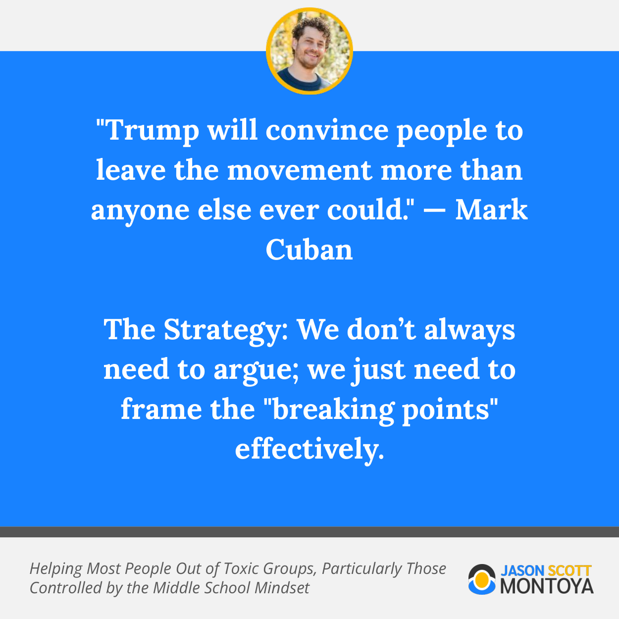 When a group is toxic because the leader is toxic, how do you help people escape this toxic political group or movement? It's one thing for someone inside of it to want to leave, but what if they want to stay or at least don't want to rock the boat by leaving?