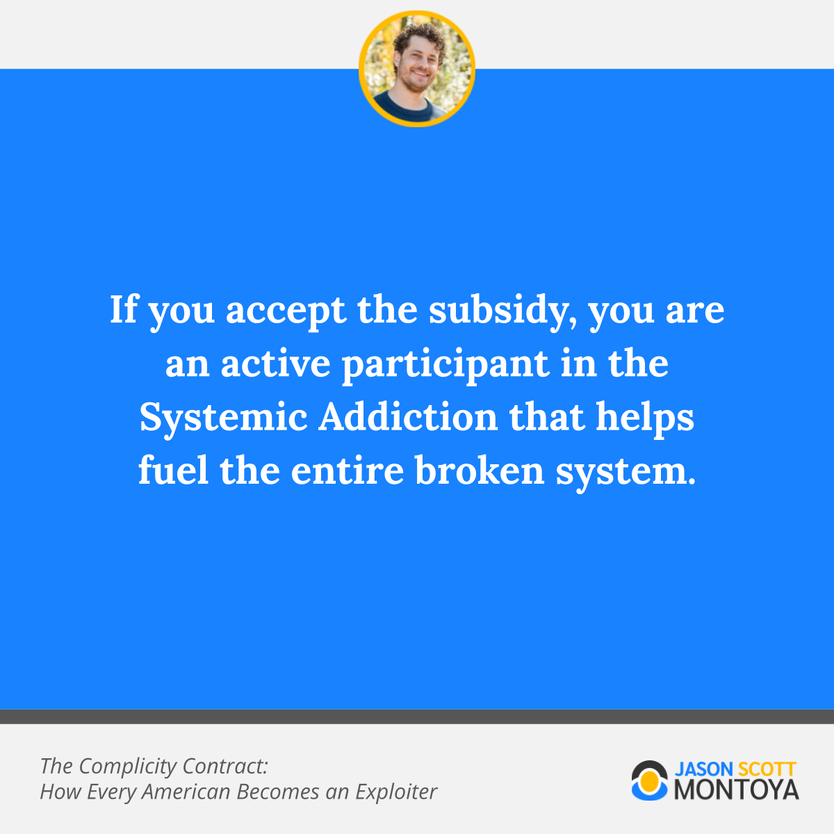 If you accept the subsidy, you are an active participant in the Systemic Addiction (which is all of us) that helps fuel the entire broken system.