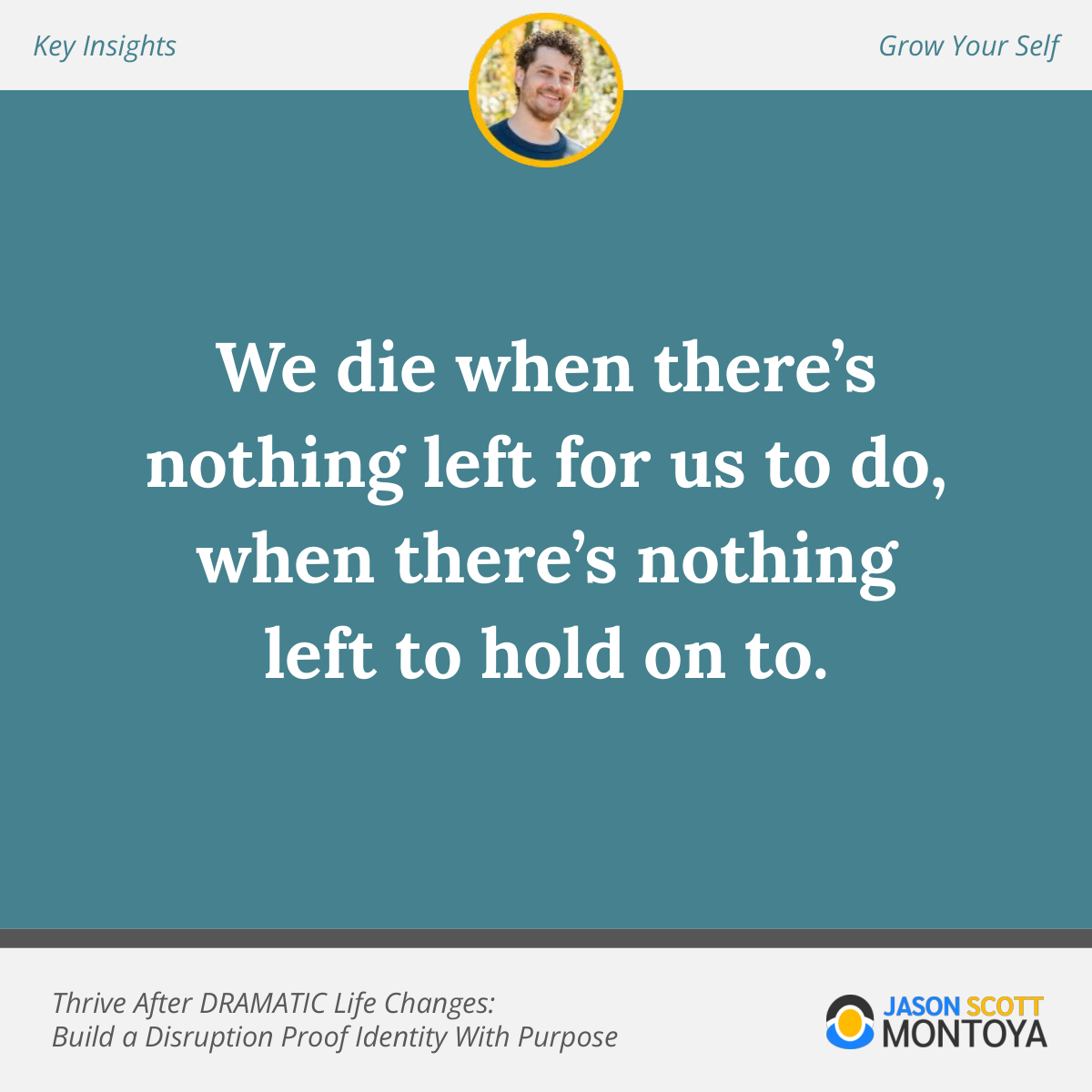 One of the things this person did was start a business. This new company gave him a renewed sense of purpose, something to do, a mission to participate in, and a community to create accountability towards new goals and a vision. When his work ended, he started something new, and that gave him something to live for. When you don't have something to live for, when you don't have a purpose, then dying is what we do. We die when there's nothing left for us to do, when there's nothing left to hold on to.