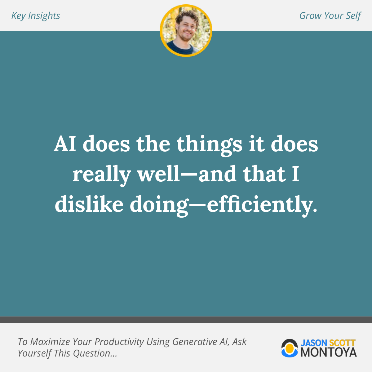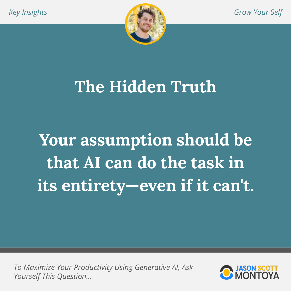 When you're leveraging generative AI right, you will streamline and delegate the tasks that generative AI is good at doing, and you'll discover how limited AI actually is when you push it to its limits; there are many things it just can't do right now, or can't do well. By asking yourself the question above, you discover the spectrum of possibilities.
